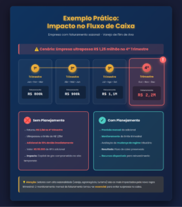 A mudança de faturamento gera um risco alto para a sazonalidade. Setores como o varejo ou o agronegócio, por exemplo, enfrentam picos de vendas em períodos específicos. Por causa disso, um excelente resultado em apenas três meses gera imposto na hora, o que drena o capital de giro necessário para os meses seguintes.